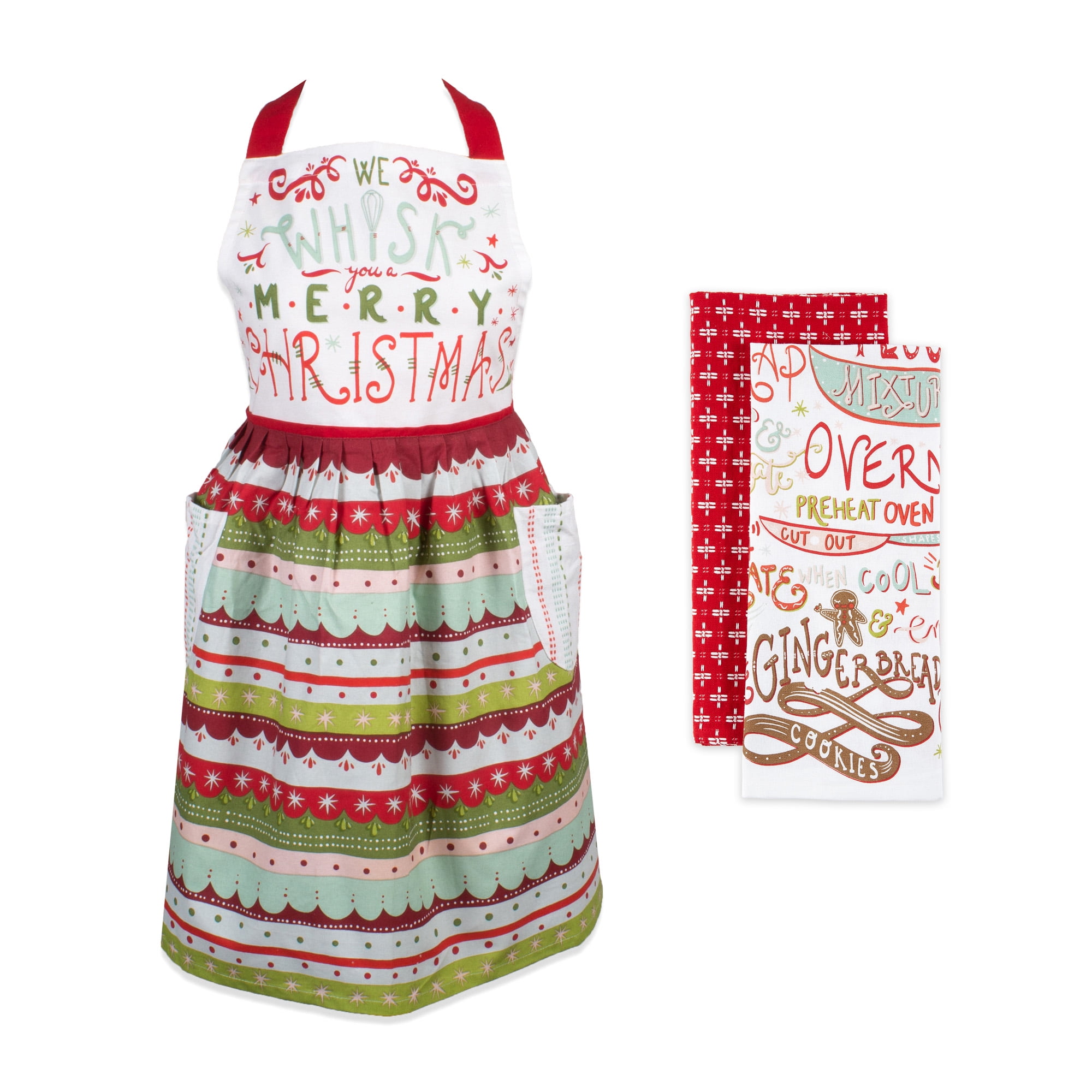 Set Of 3 Red And White We Whisk You A Merry Christmas Apron And Towels 32 Walmart Com